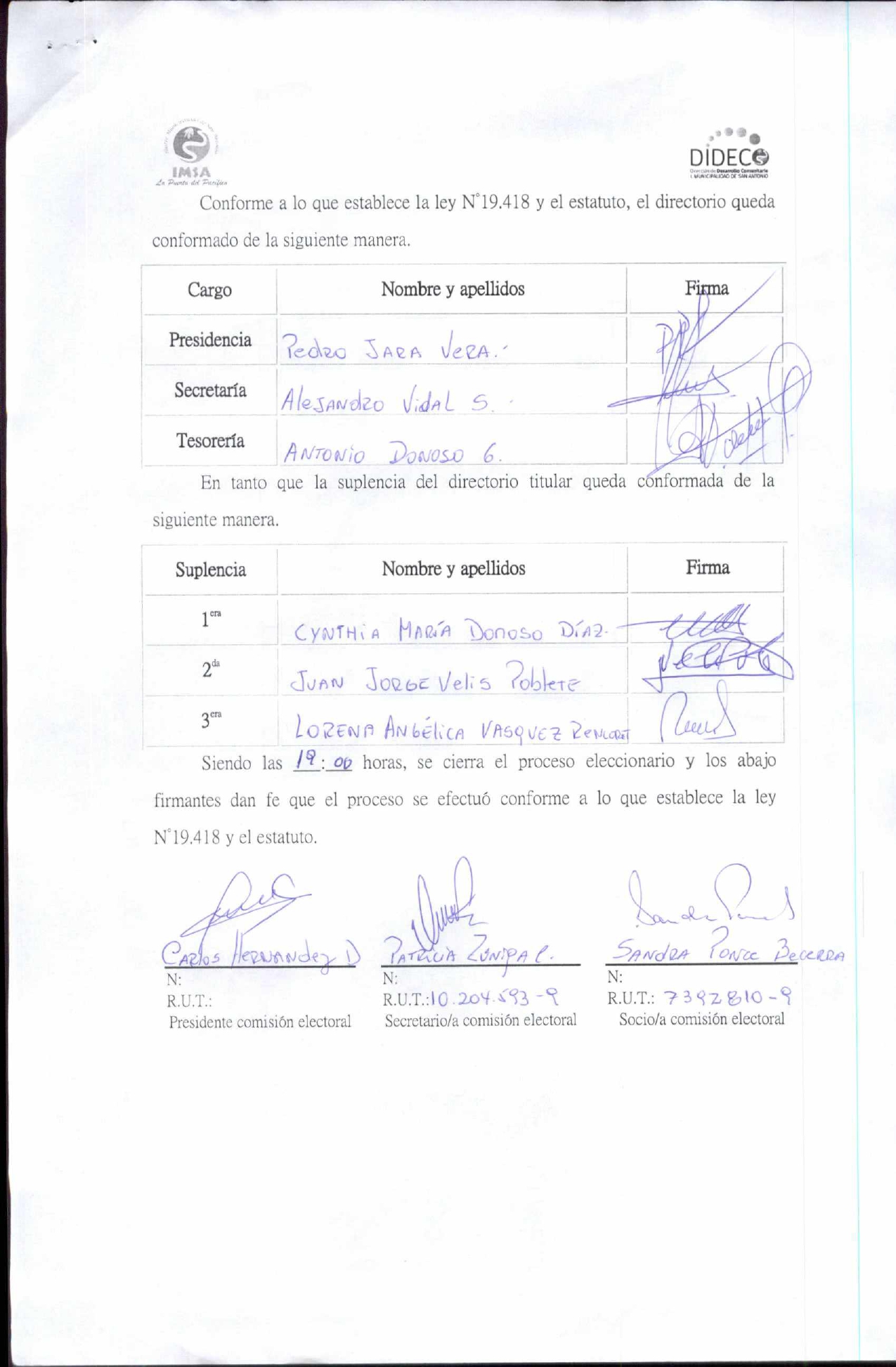 Acta de elección "ELECCION JUNTA DE VECINOS AGUAS BUENAS"