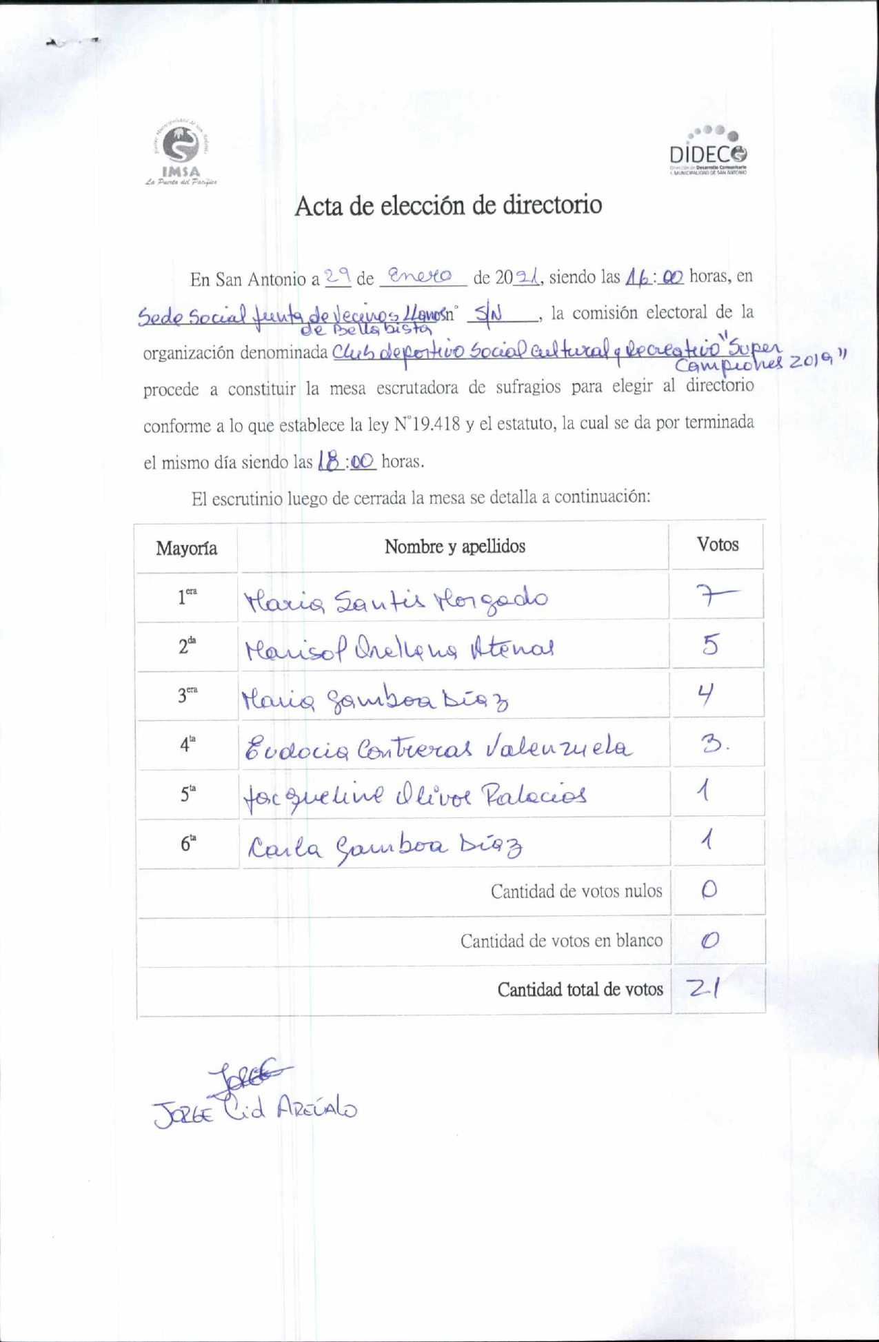 Acta de elección Club Deportivo social cultural y recreativo "Super Campeones 2019"