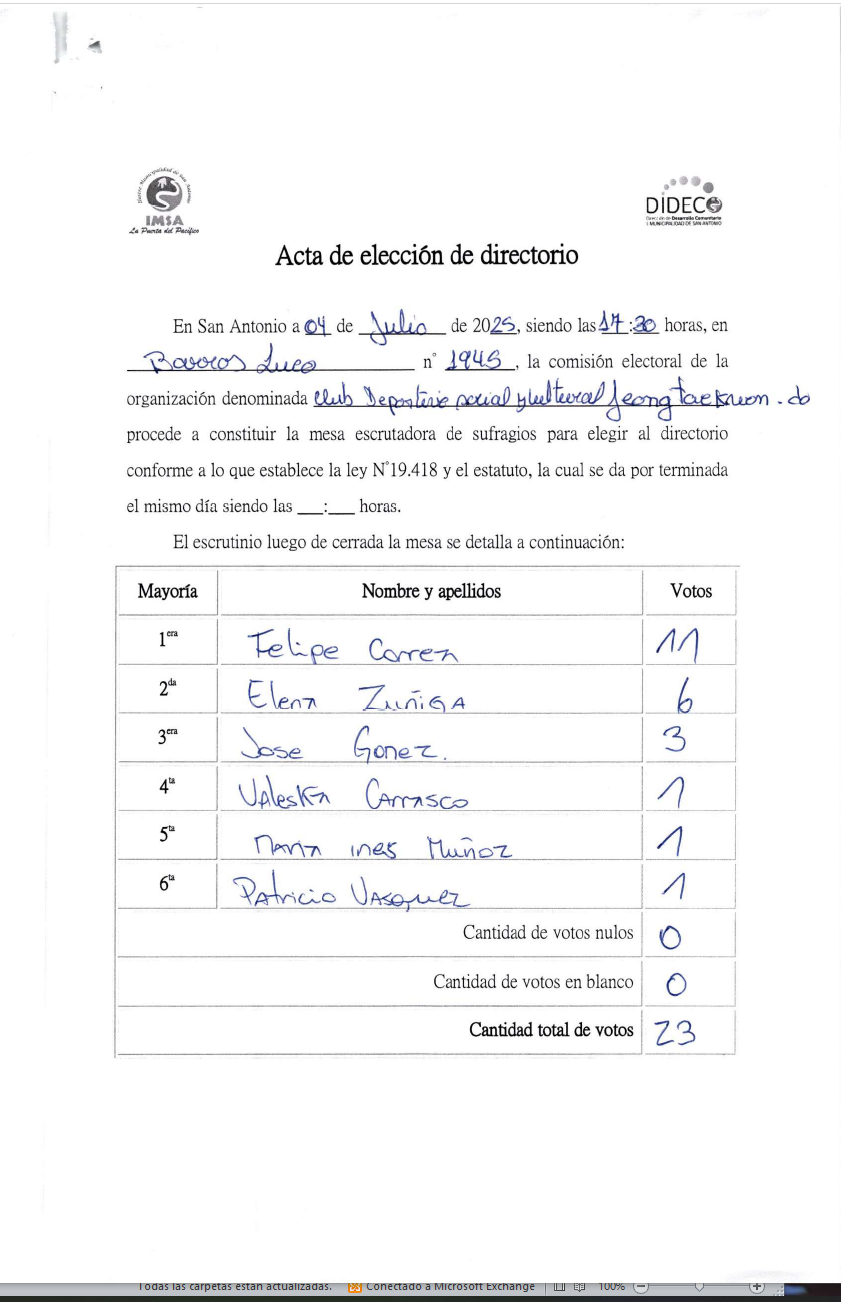 Acta Deportivo Social y Cultural Jeong Taekwondo