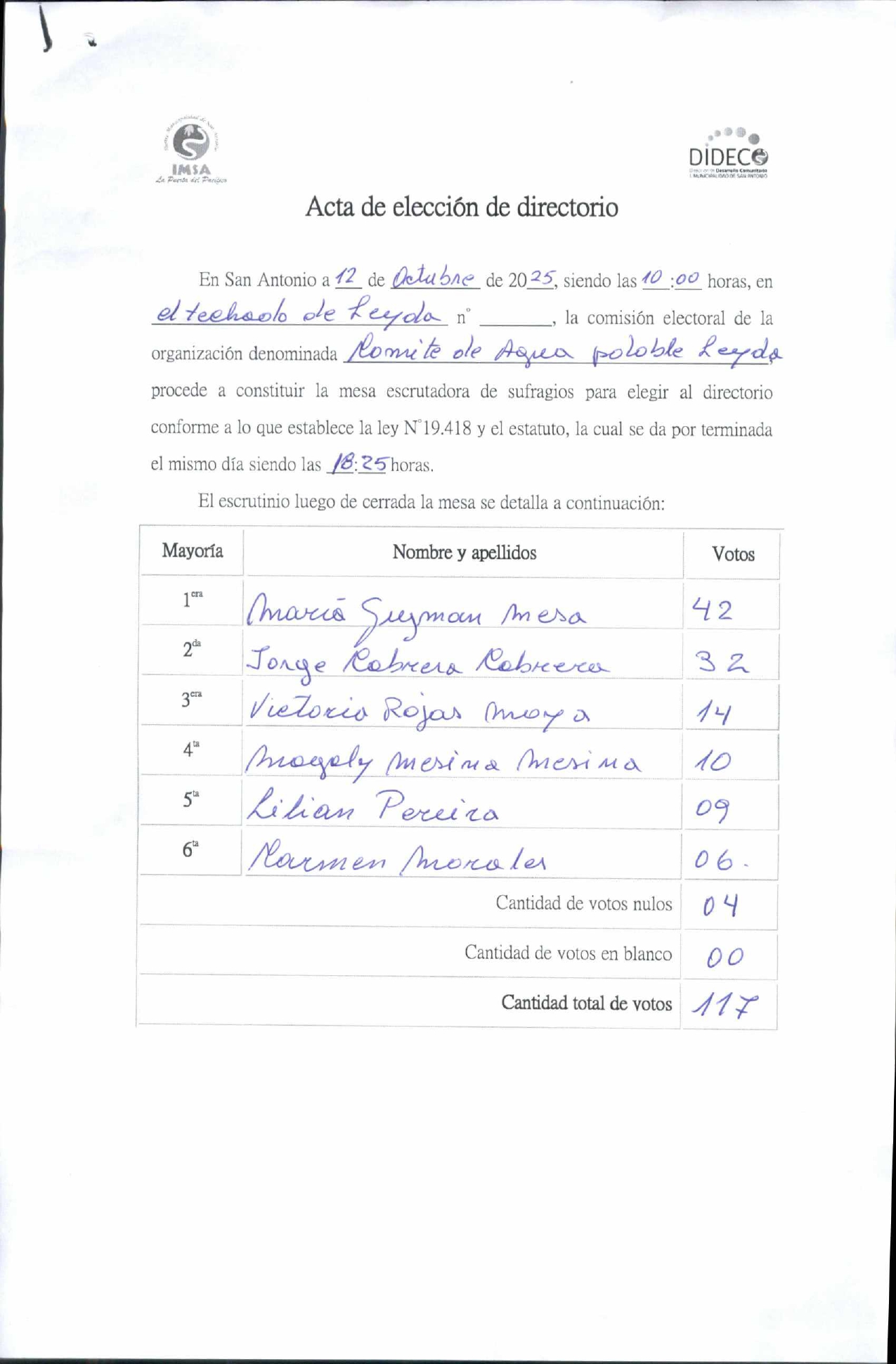 Acta de elecciones COMITE DE AGUA POTABLE LEYDA