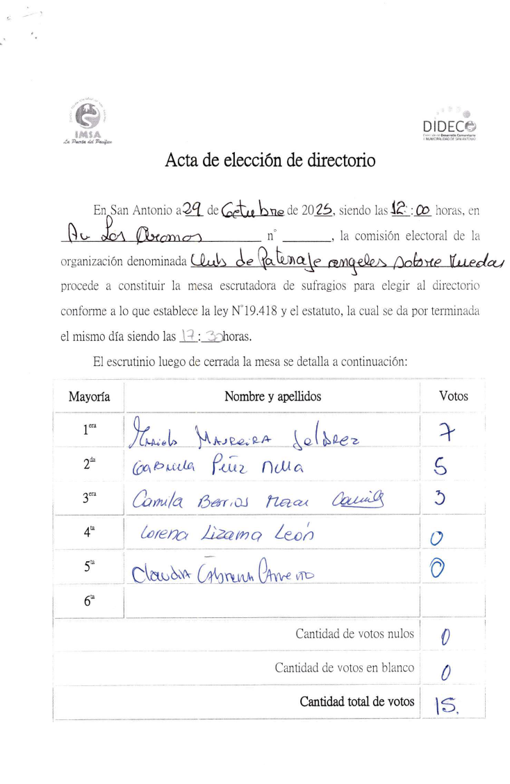 Acta Club de Patinaje Angeles sobre ruedas