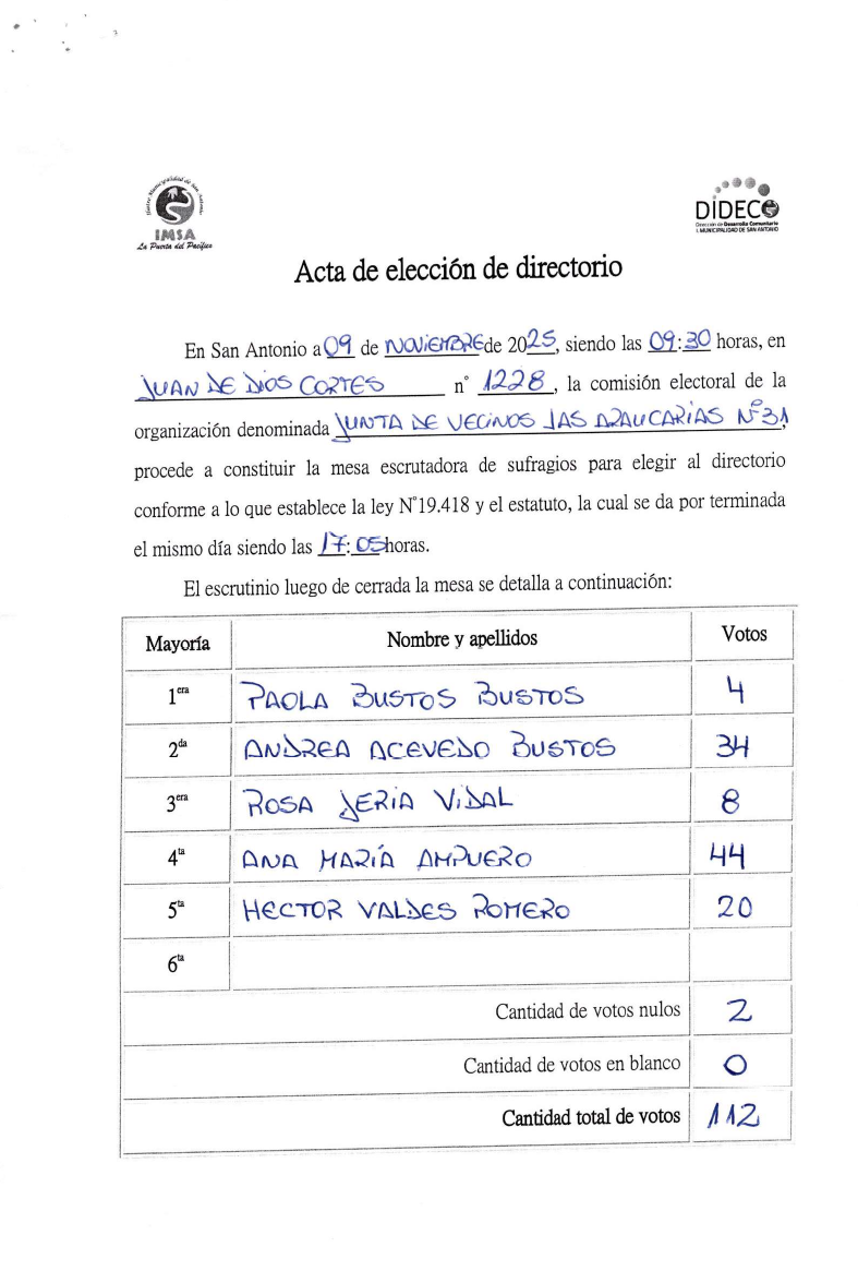 Acta Junta de Vecinos Las Araucarias N°31