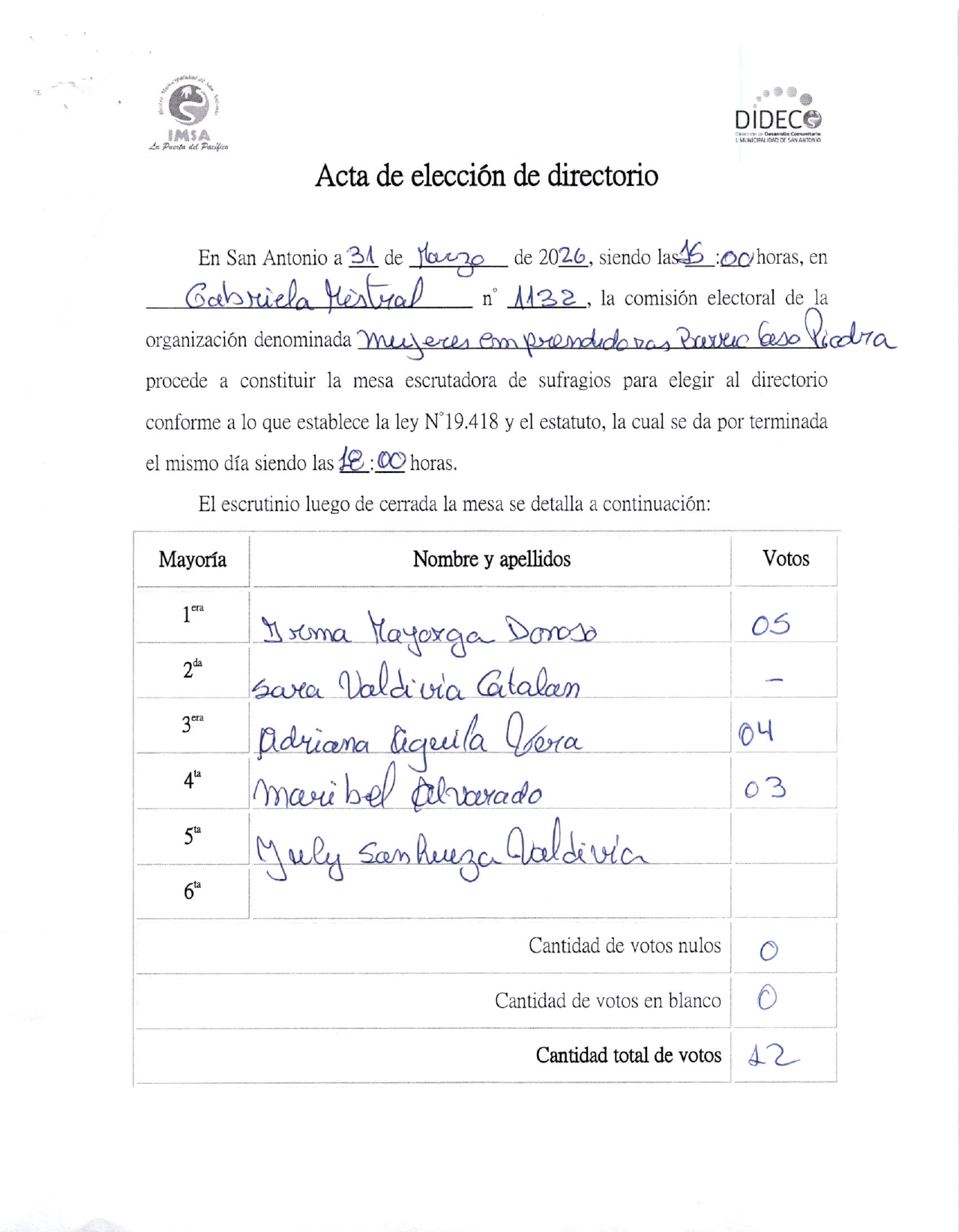 ACTA MUJERES EMPRENDEDORAS BARRIO CASA PIEDRA