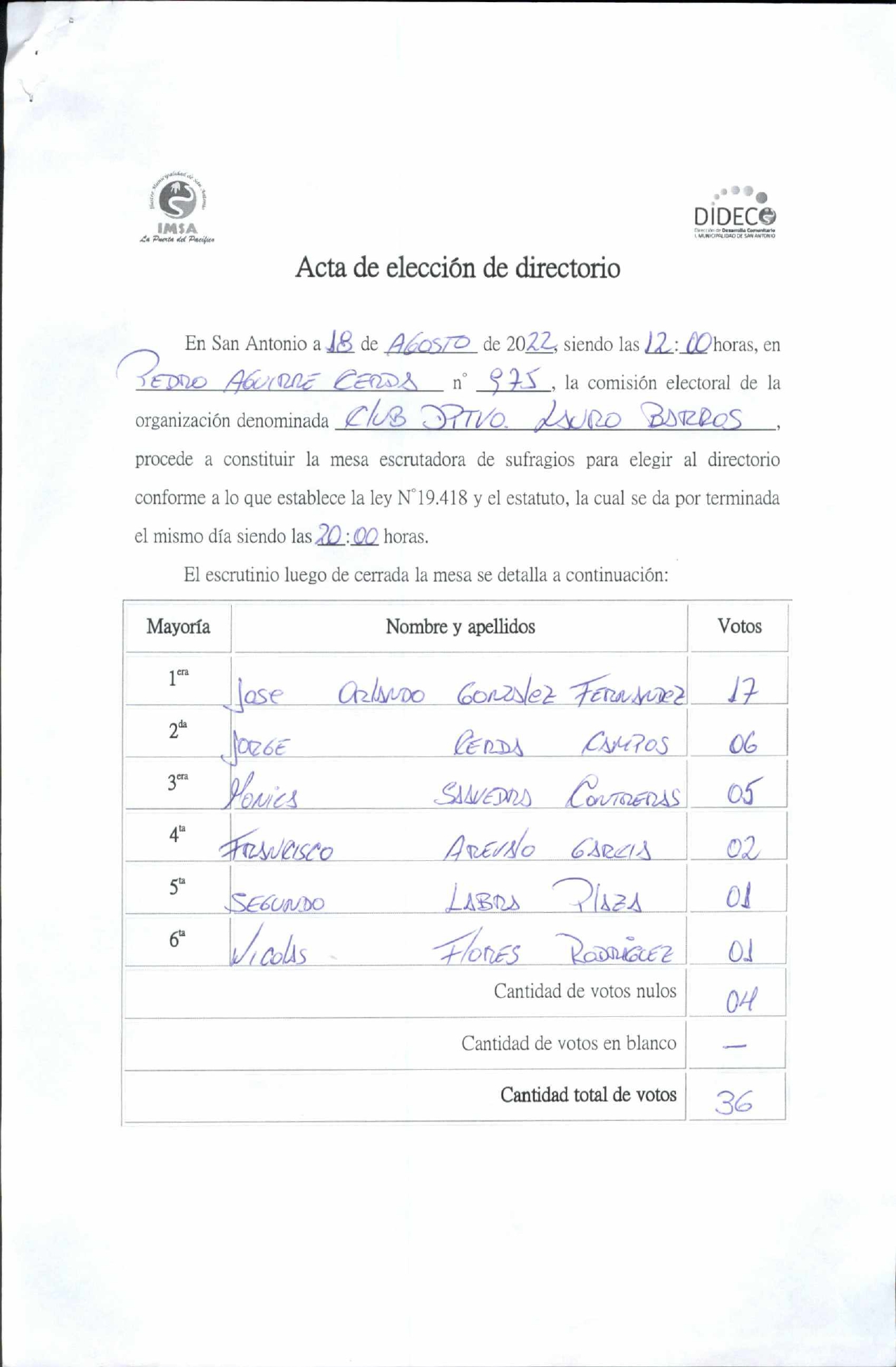 Acta de Elecciones "Club Deportivo Lauro Barros"