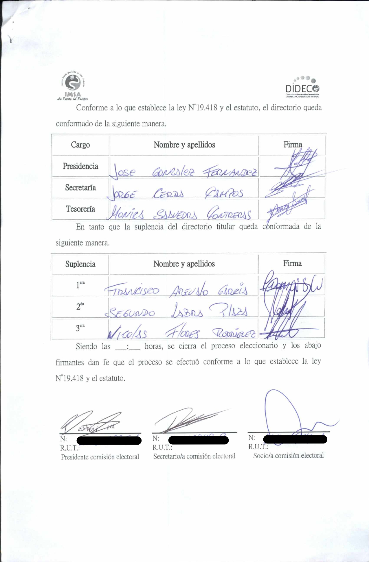 Acta de Elecciones "Club Deportivo Torino de San Antonio"
