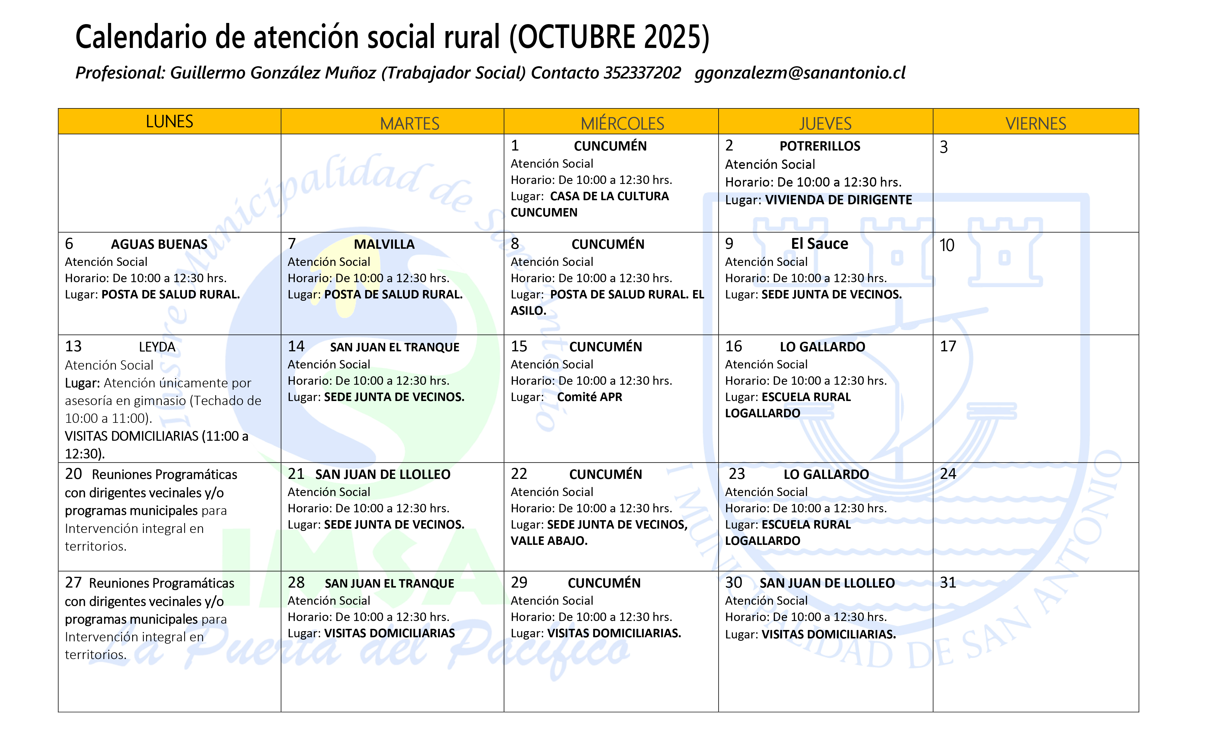 Lunes a jueves (jornada de mañana). Atenciones extraordinarias según contingencia.